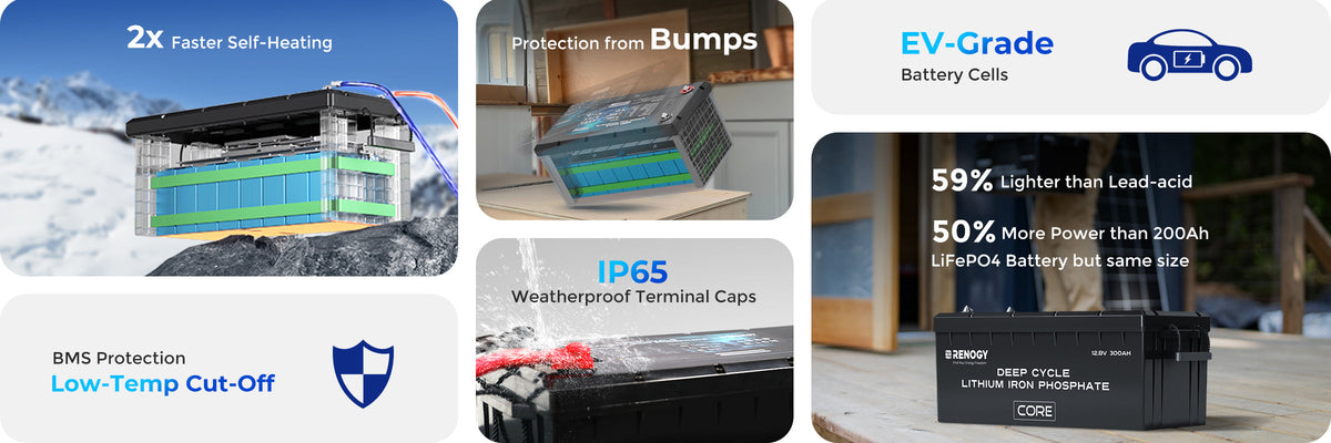 Offrant une alimentation constante durant presque 10 fois plus longtemps qu’une batterie plomb-acide classique, la batterie Renogy 12V 300Ah Core LiFePO4 est équipée de cellules de qualité automobile (EV-grade) pour des performances durables.