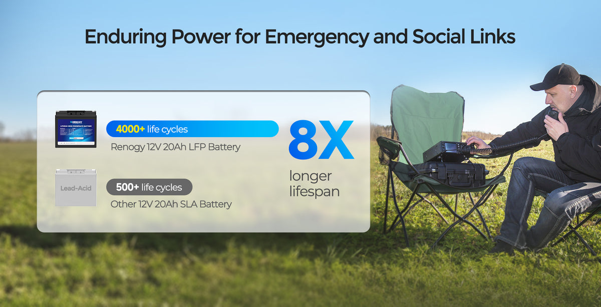 La batterie Renogy 12V 20Ah LiFePO4 alimente vos installations radioamateurs mobiles avec une durée de vie 8 fois supérieure à celle des batteries au plomb — fini les pannes de batterie lors de vos activations POTA.
