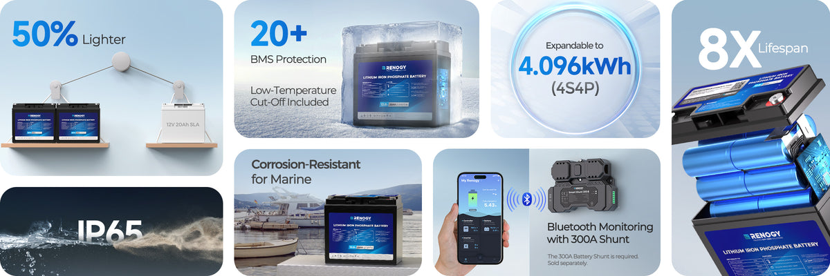 RENOGY Batterie Lithium Fer Phosphate 12,8V 20Ah à Décharge Profonde
