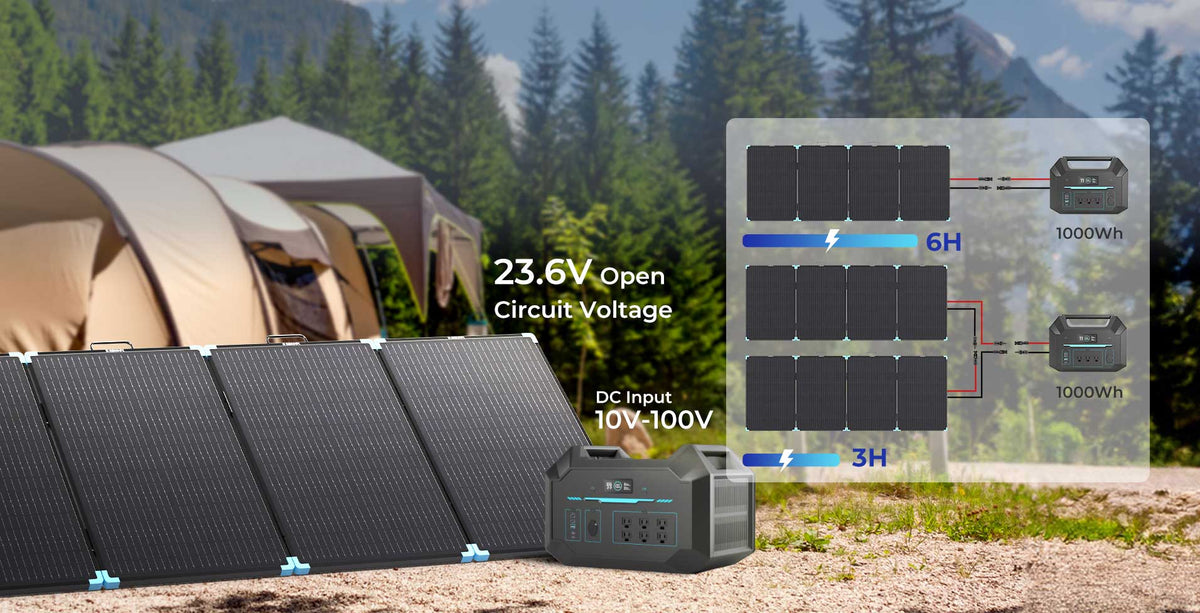 Il est donc recommandé de dimensionner d’abord votre batterie en fonction de la capacité minimale requise, puis de décider du nombre de panneaux ou de la puissance d’entrée nécessaire pour votre installation.