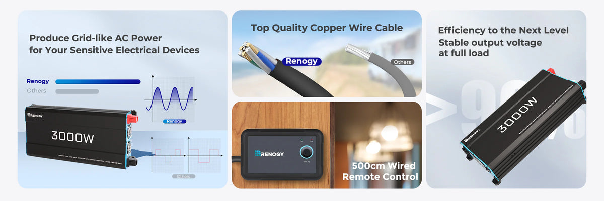 L’onduleur Renogy 3000W 12V utilise une technologie avancée d’onde sinusoïdale pure pour fournir une énergie propre et stable. Idéal pour les appareils électroniques sensibles, il prolonge leur durée de vie et évite les interférences.